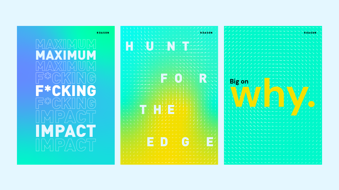 To reflect Reason’s unique modelling and prediction approach, we created a programme that generates brand graphics inspired by vectors of nature. To balance this and reflect their humorous and playful side, we gave Reason a photography style with a slightly awkward, quirky character.